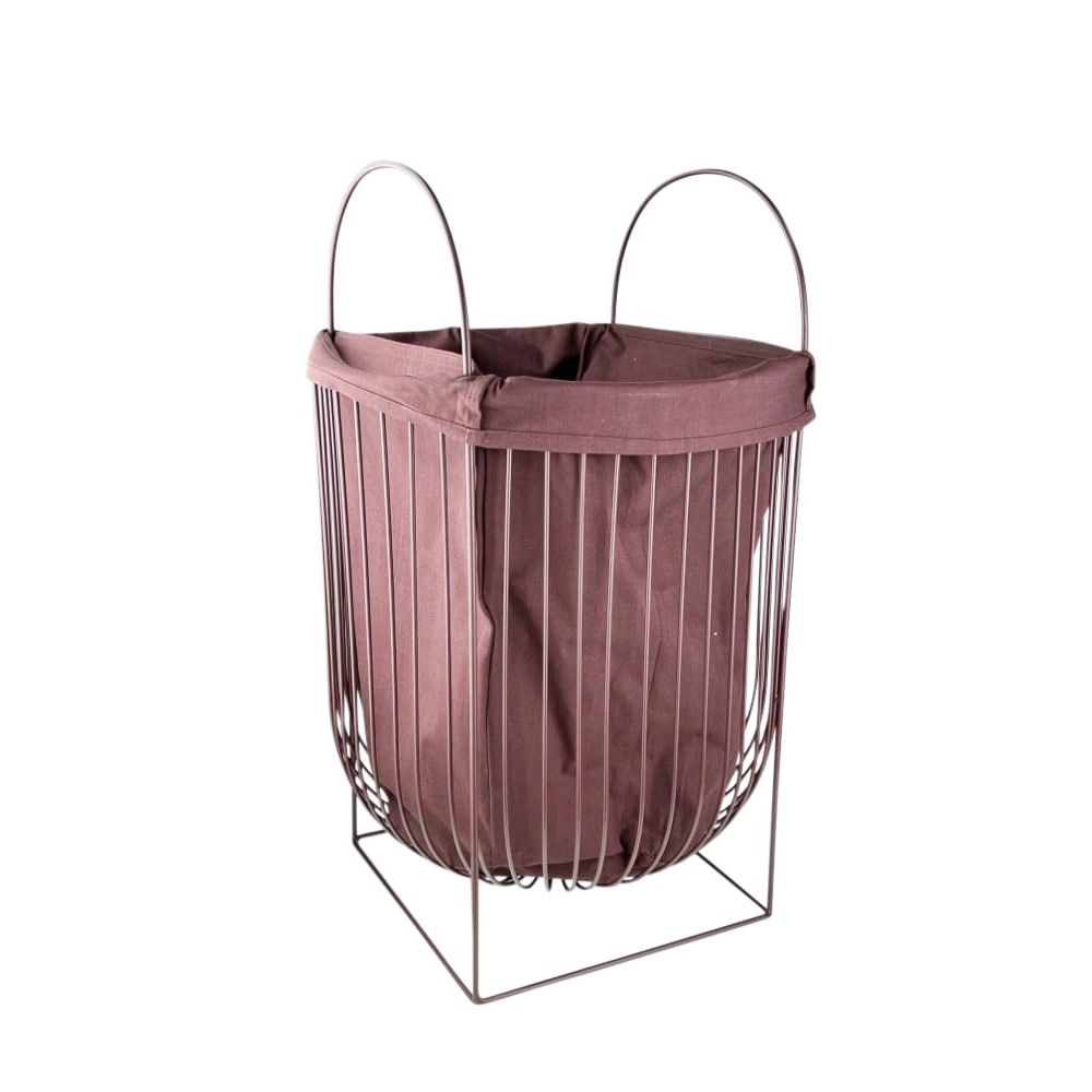 Wäschekorb Arild von Broste Copenhagen. Gestell ist aus Eisen. Material vom Einsatz ist aus 100% Polyester. Farbe ist Aubergine. Maße sind ca. B 46 cm x H 72 cm x T 46 cm.