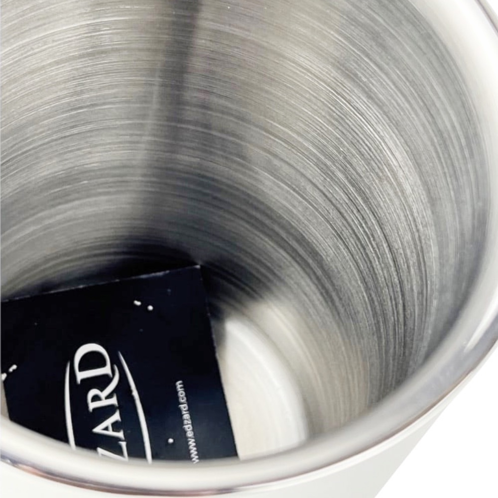 Weinkühler "Nebraska" von F. Edzard. Das Material ist Edelstahl, spiegelglanzpoliert. Der Durchmesser ist ca. 12 cm. Die Höhe beträgt ca. 20 cm. Die Farbe ist Silber.