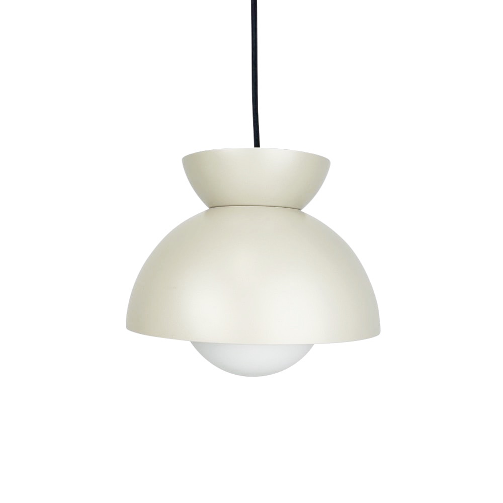 Kleine Design Pendelleuchte Butterfly von Frandsen. Die Farbe ist Beige, Weiß. Das Material vom Lampenschirm ist Metall, beschichtet. Das Material vom Diffusor ist Opalglas. Die Maße sind ca. Ø 21 x H 19 cm. Die Leuchtmittelfassung ist 1x E14. Benötigte Leuchtmittel nicht im Lieferumfang enthalten.